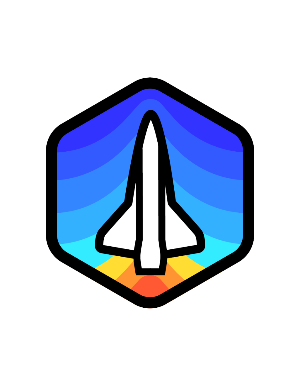 The elements of the Spaceflight Everyday logo draw inspiration from symbols that are well-known to the aerospace community: the Space Shuttle and hexagons (the shape used in the panels of the James Webb Space Telescope). Behind the Shuttle, a stepped gradient following the Shuttle shape represents liftoff and ascension through Earth’s atmosphere.