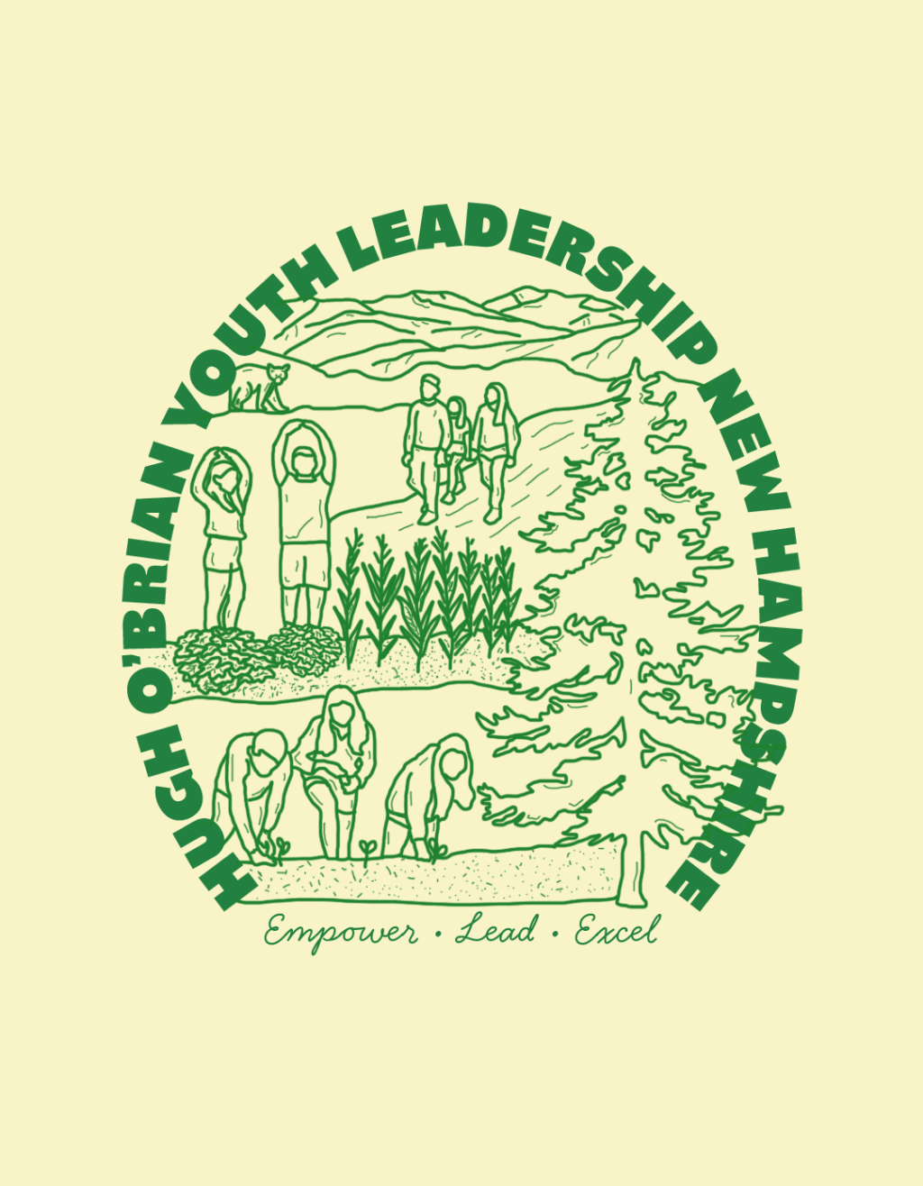 Create a series of designs to be printed and sold as a fundraiser for HOBY New Hampshire: a nonprofit organization whose mission is to inspire and develop our global community of youth and volunteers to a life dedicated to leadership, service, and innovation. A variety of styles should be available for broader appeal.